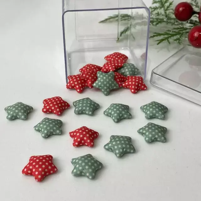 Apresentamos nossos botões em formato de estrela, cobertos com tecido de alta qualidade, que trazem um acabamento único para qualquer peça. Com medidas de 2cm x 2cm, são perfeitos para dar aquele detalhe especial em roupas e acessórios.