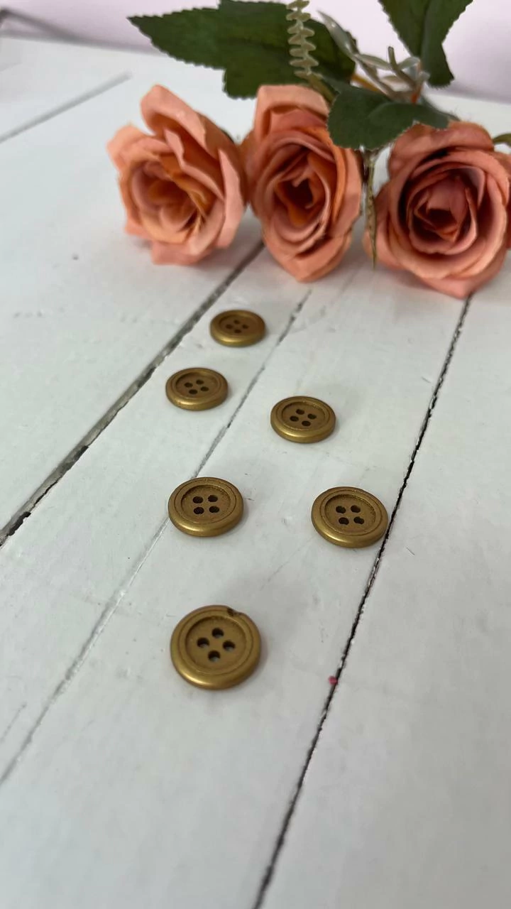 Descubra os Botões Dourado tamanho M perfeitos para dar um toque especial às suas criações! Com 1 centímetro cada, eles vêm em pacotinhos com 6 unidades, ideais para enfeitar roupinhas ou até mesmo como acessórios charmosos.