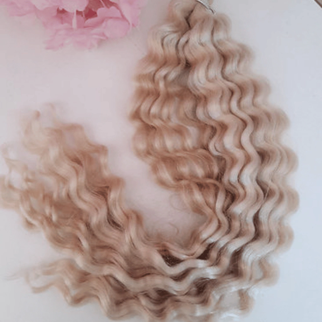 No modelo solto ondulado e longo. Este cabelo não tem fita prendendo ele, você pode aplica na boneca ou boneco pregando na cabeça ou ate mesmo costurando na maquina com ponto pequeno e linha da mesma cor do fio
