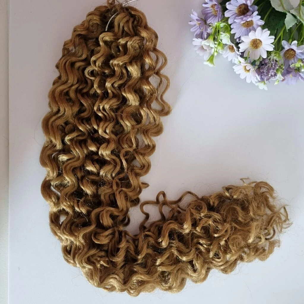No modelo solto ondulado e longo. Este cabelo não tem fita prendendo ele, você pode aplica na boneca ou boneco pregando na cabeça ou ate mesmo costurando na maquina com ponto pequeno e linha da mesma cor do fio