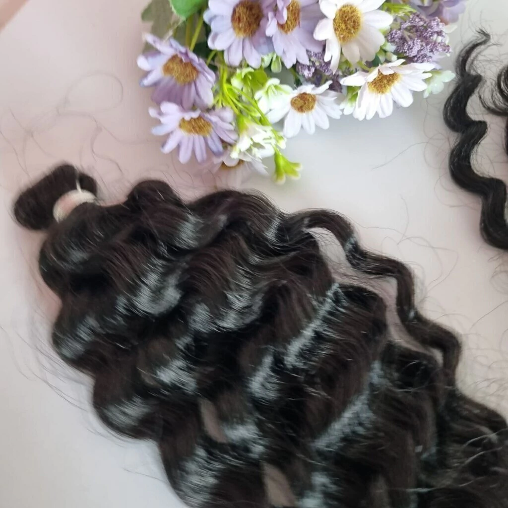 No modelo solto ondulado e longo. Este cabelo não tem fita prendendo ele, você pode aplica na boneca ou boneco pregando na cabeça ou ate mesmo costurando na maquina com ponto pequeno e linha da mesma cor do fio
