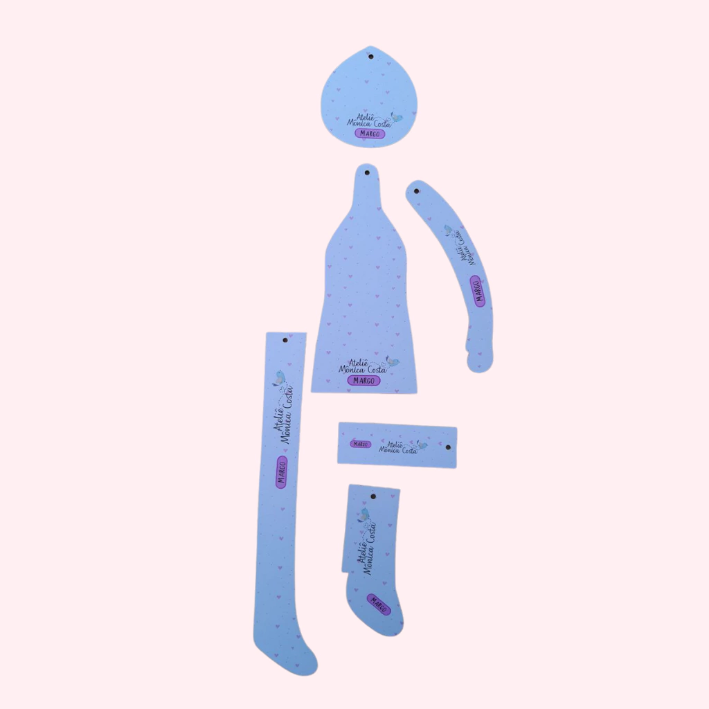 Com dimensões que permitem a confecção de bonecas de aproximadamente 60 a 65 cm, este molde oferece o tamanho ideal para criar peças versáteis, seja para coleção, decoração ou mesmo para presentear. A precisão do Molde Durável - Margo assegura que cada boneca feita tenha proporções harmoniosas e detalhes requintados, possibilitando a produção de várias bonecas com características únicas, dependendo dos materiais e acabamentos escolhidos.