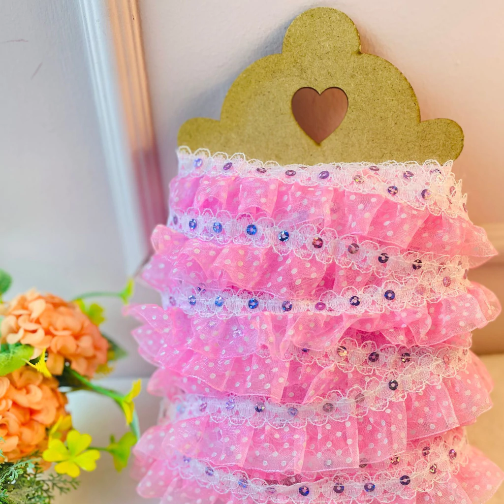 A Renda Frufru Póa Rosa é o toque especial que faltava para dar muito chame às suas bonecas e projetos de costura! Com 3 cm de largura, essa renda delicada é perfeita para acabamento de roupas, detalhes decorativos e diversas outras aplicações que pedem um charme extra.