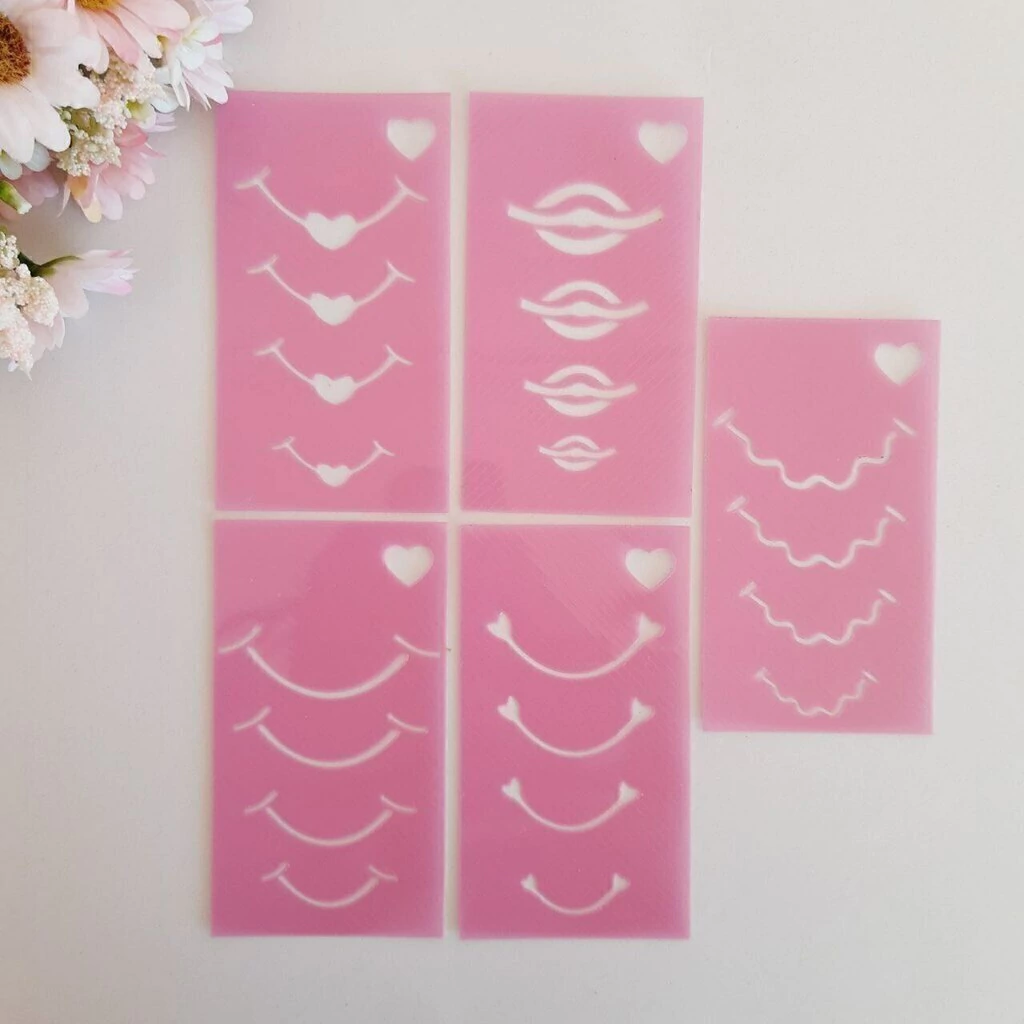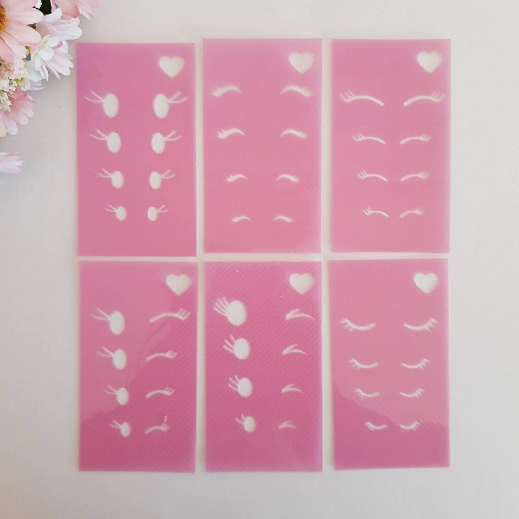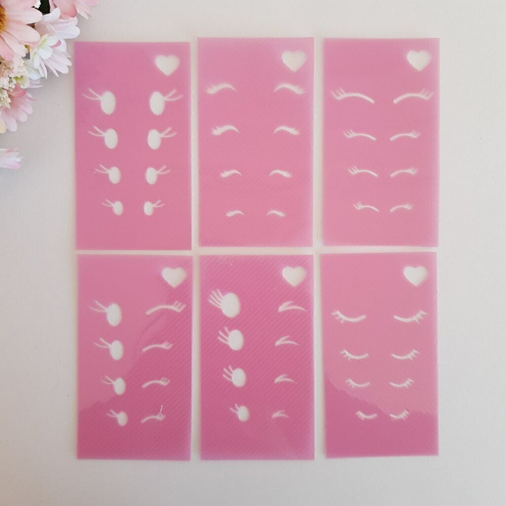 Este modelo é composto por 6 modelinhos de olhos, sendo eles, 2 piscando, 2 oval com cilios e 3 fechados, 5 modelinhos de bocas e 5 modelinhos de nariz