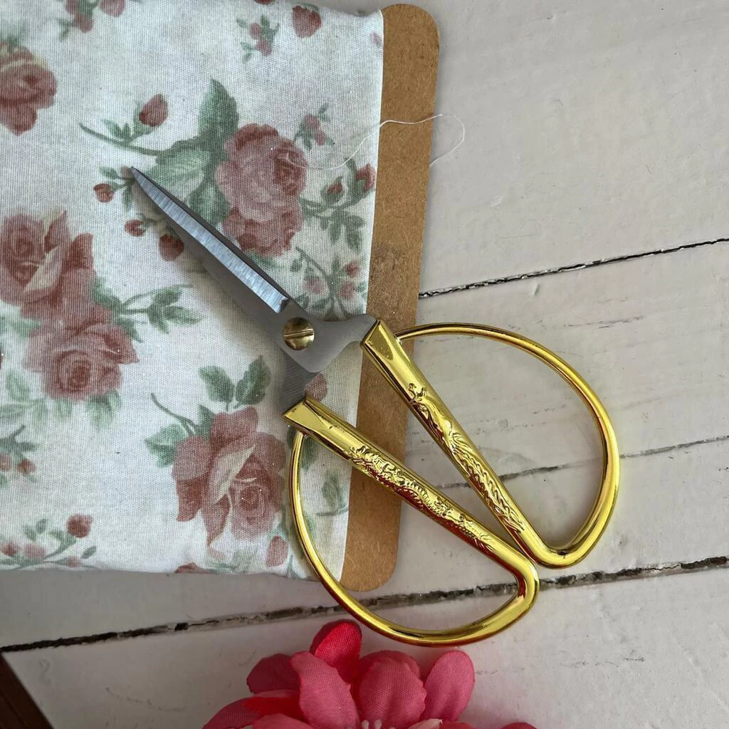 Características principais: - Tesoura vintage com acabamento dourado - Medida: 12,5 cm - Ideal para acabamento e ajustes finos - Design elegante que acrescenta charme ao seu trabalho