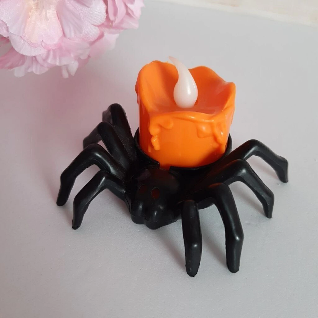 Vela de aranha com led ideal pra deixar suas peças de halloween iluminadas e assim chamar a atenção de todos